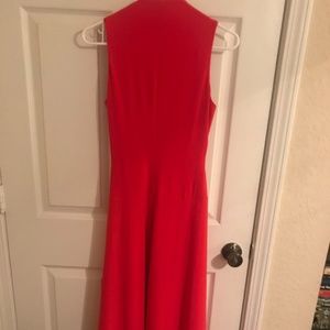 Retro-Inspired true red dress from Chaps. Fabric provides plenty of stretch. I can confirm it will fit a medium as well. Only worn once. I am 5'6 and comes just below the knees. Wonderfully comfortable and fabric is not see-through and dress does not require slip. Deep v-neckline, cinched at waist and A-line bottom