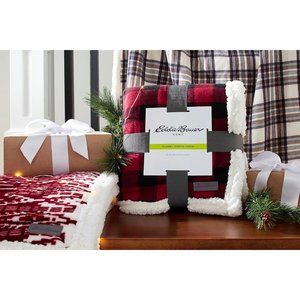 FEATURES: Faux shearling trim and signature Eddie Bauer logo label complete the look; Throw blanket is wonderfully soft and warm as a go-to throw or for the foot of your bed; Choose between Eddie's many pattern and style options; Lightweight and easily packable
