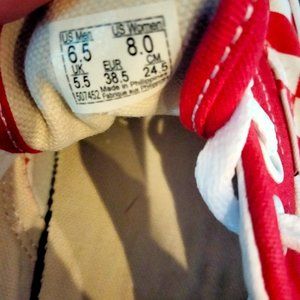 They are barely worn, like new, Although on the back there is a little bit of fading on the logo I put a picture of it up so you can see what I'm talking about. They are size 8.0 in woman's and size 6.5 in men's. Feel free to ask any questions.