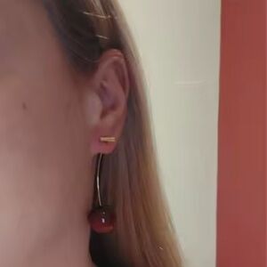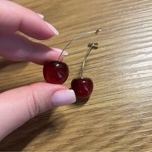 Add a playful touch to your look with these elegant red cherry drop earrings. Perfect for any occasion.