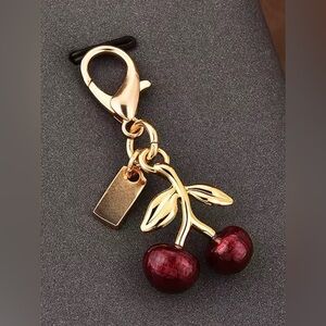 Add a playful touch to your accessories with the Coach Red Cherry Keychain. Featuring vibrant red cherries and a gold-tone finish, this piece is both fun and stylish.