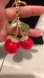 Stylish keychain featuring vibrant red cherries with sparkling gold accents and green leaves.