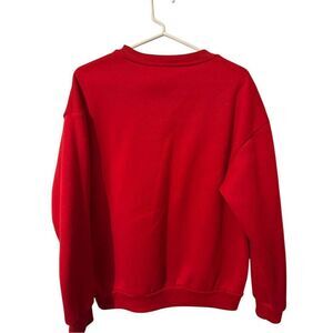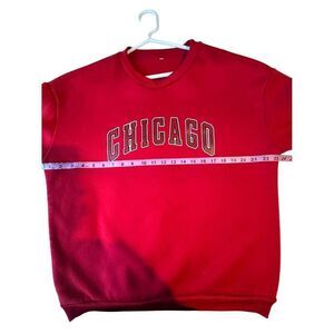 Keywords: red sweatshirt, unisex, crew neck, long sleeve, graphic, comfy, casual, Chicago, soft, regular fit, pre-owned, minor pilling, mens, womens, Illinois