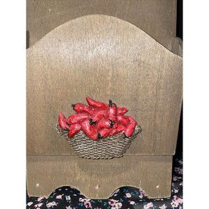 Red Chili Peppers Wall Hanging Hand Painted Ceramic Wood Home Decor Kitchen Mail