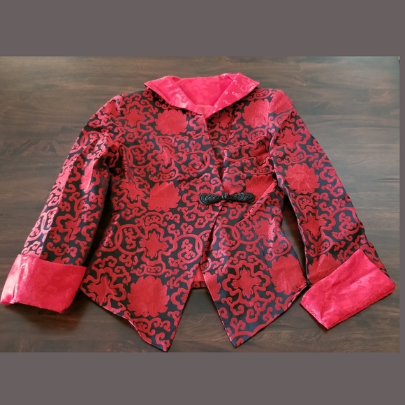 Red and black Chinese brocade jacket. Handmade and one of a kind.