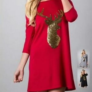 Red Christmas Dress With Gold Sequin Reindeer