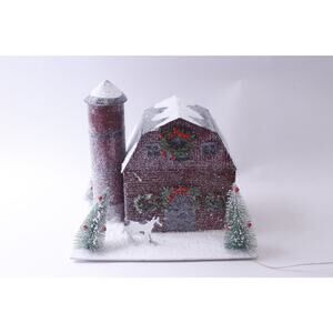 Christmas Farm Paper Decoration with Lights Inside, 9 inches, adds festive charm to mantels or tables. Perfect for holiday gatherings and home decor.