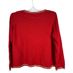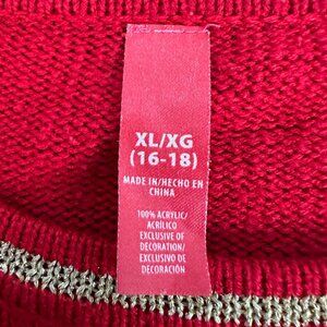 Red Christmas Sweater Santa Peace Joy Embroidered XL 16 18 Acrylic Long Sleeve