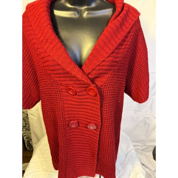 Red Chunky Knit Sweater Cardigan Womens XL Short Sleeve Christmas Jason Maxwell