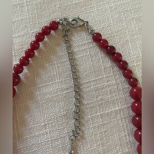 Beaded fashion necklace Red multi size stones Lobster clasp Chest length In very good used condition, no visible flaws.