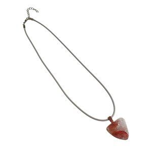 Red Clear Fire Quartz Pendant Necklace Gray Cord Healing Stone Beach Core Women