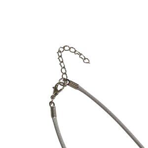 This necklace features a striking resin pendant in red and clear tones, suspended on a durable gray cord with an adjustable chain for versatile wear.