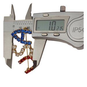 Wearing this pin is a great way to show patriotism to your beloved country, the U.S.A. Especially on holidays such as the Fourth of July, Memorial Day, and Election Day. It features gold-tone spelled USA letters decorated with red, clear, and blue faceted rhinestones individually prong-set along the outline of each letter. It measures approximately 2 inches in width and 1 inch in length. The back has a secure locking pin which is sturdy and fixed ensuring that it stays securely attached to your clothing or accessory throughout the day. This entertaining pin represents patriotism for America and will be loved for years.