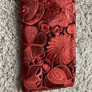 Red clutch hand embroidered. Traditional Mexican artisanal. Also have one blue bag left (last picture).