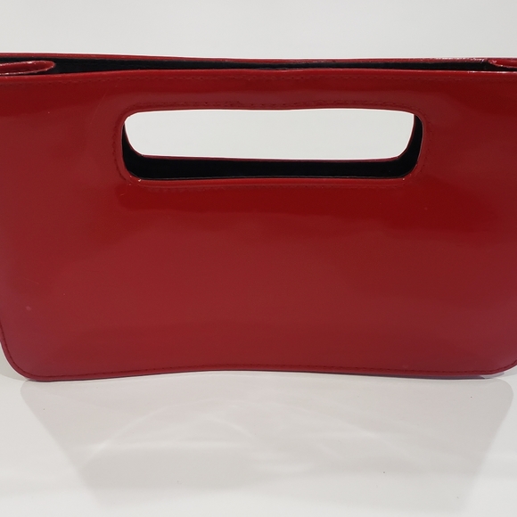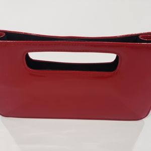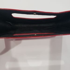 Cute, sleek red clutch purse. Fits cell phone, lipstick, and cards. Black inside. Very slight wear on outside.
