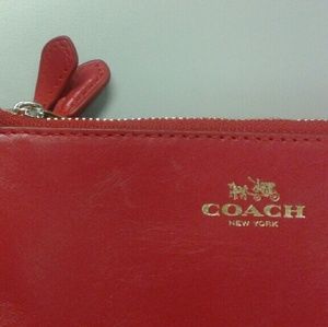Red Coach Double Corner Zip wristlet