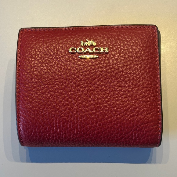Coach Snap wallet in refined pebble leather 1941 Red with gold hardware color. Perfect for the coming season.