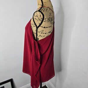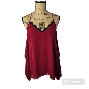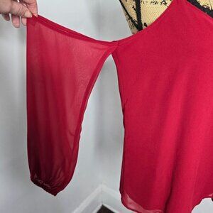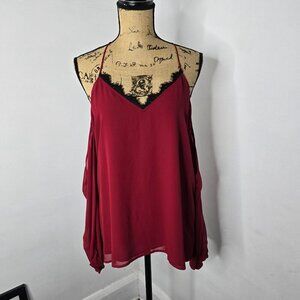 Red Cold Shoulder Black Lace Trim Chiffon Sleeve Express Top Medium