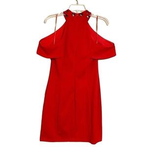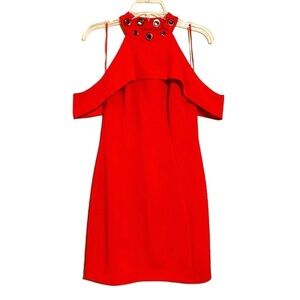 Sleek cold shoulder dress. High neckline embellished with grommets. Spandex allows for comfort and flattering figure lines. Made by Dee Dee. Size M. Mint condition. Worn once. PM 88