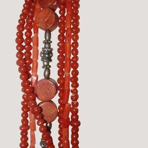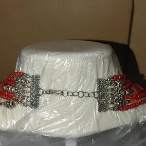 Red Coral Multi Strand Necklace 16 Inch Mexican 925 Sterling Silver Intricate