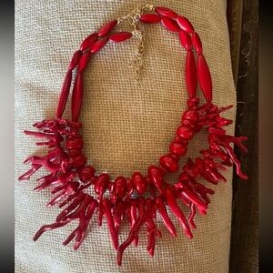 Stunning red coral necklace perfect for adding a bold touch to any outfit. This eye-catching piece is a must-have for jewelry lovers.