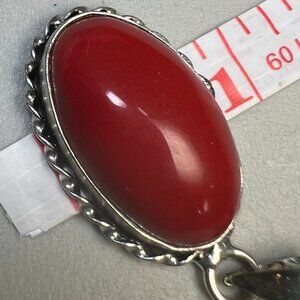 Red Coral Oval 925 Pendant on Necklace Choker Torque 925 Twisted Collar