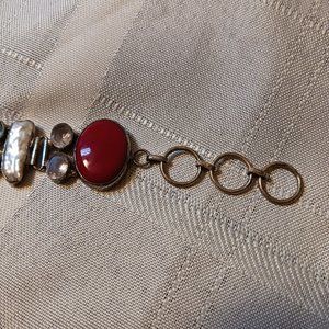 Red Coral, Pearl and Semi Precious Stones Sterling Silver Bracelet