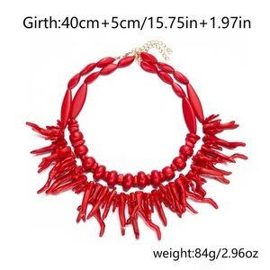 Make a bold statement with this vibrant red coral necklace. Perfect for adding a pop of color to any outfit.