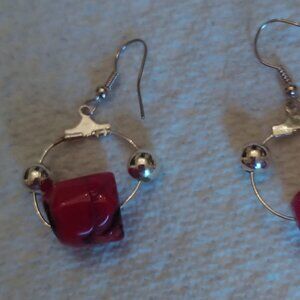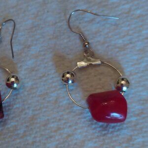 Red Coral and Black Sterling Silver Earrings