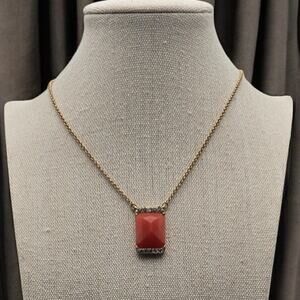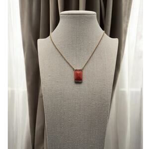 Red Coral and Rhinestone Vintage Signed Monet Pendant Necklace