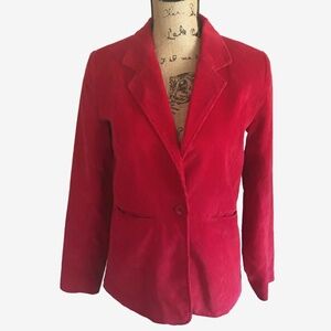 Red Corduroy Classic Single Breasted Women's Lined Blazer Single Button Sz XS