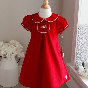 Red Corduroy Dress White Trim Preppy Monogram Panel 100% Cotton Portrait 4T NWT