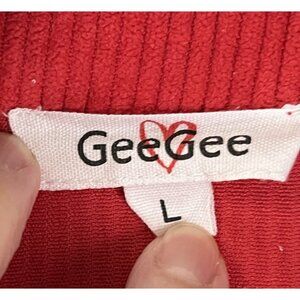 Red Corduroy look GeeGee Western Rhinestone Fringe Jacket L Womens Snap Shacket