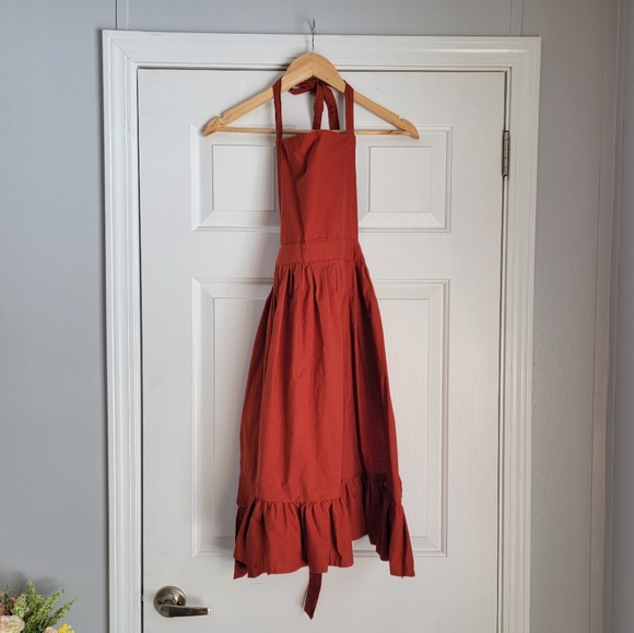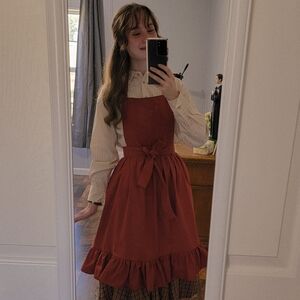 Red Cottagecore Apron With Ruffles
