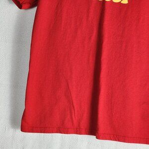 Red Cotton Poly Soft Yellow Graphic Pancake Smooth Like Butter SS T-Shirt Size L