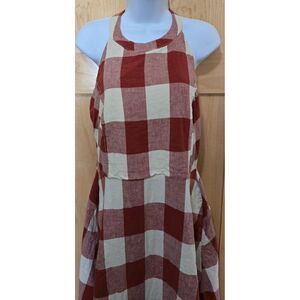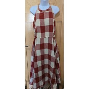 Red & Cream Checkered Halter-Style Sundress Open Back Beach core nautical boho