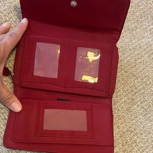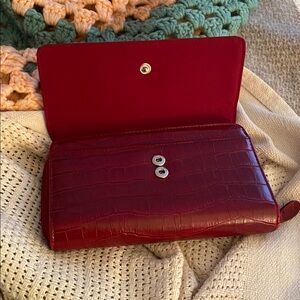 Stylish red croc-embossed wallet. Perfect for organizing essentials. ID cards, credit cards checkbook, and more.