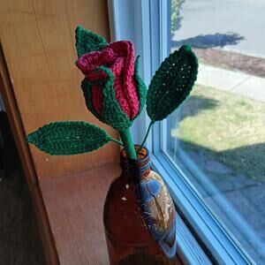 Red Crochet Rosebuds Last Forever 9" long stem rose unique faux flower cottage