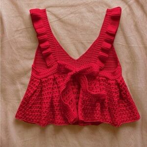 Elevate your style with this vibrant red crochet ruffle top. Perfect for any occasion, it offers a flattering fit and unique design.