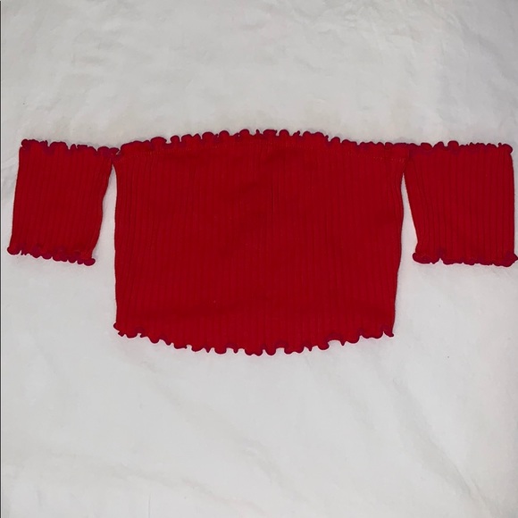 Red and pink forever 21 off the shoulder crop top With ruffled edges