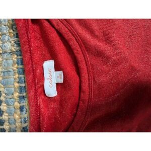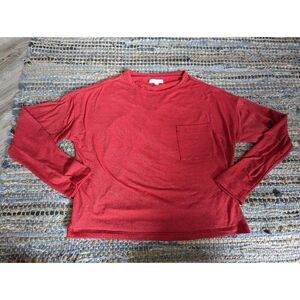 Red Cropped Pullover Sweater S Lightweight L/S Sparkly Glitter Front Pocket