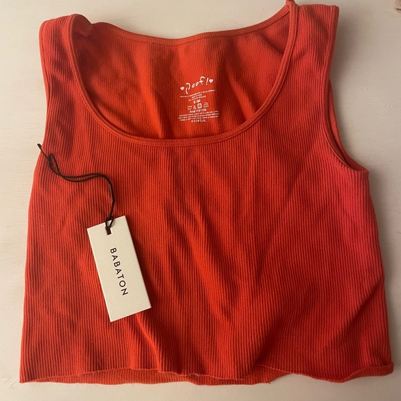 Red Cropped Ribbed Tank