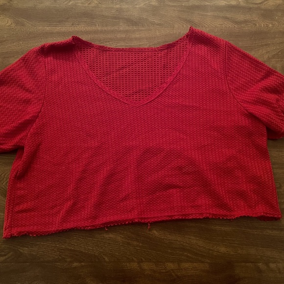 Red Cropped Tee, Size L, Waffle Material, light weight, great for summer