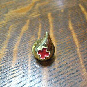 Red Cross Blood Drive Vintage Lapel Pin - Gold Red White Donor Drop Badge Pin