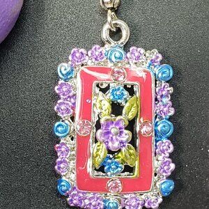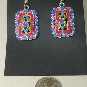 Enhance your look with the captivating Silver tone Rectangular Flower Multicolor Crystal Fishhook Drop red Earrings. These elegant earrings feature a rectangular flower design adorned with vibrant multi-color crystals, creating a stunning visual appeal. With a drop length of 2 inches and a width of 0.75 inches, they dangle delicately and frame your face beautifully. The silver-tone finish adds a touch of sophistication and versatility to these eye-catching earrings. Perfect for both casual and formal occasions, these earrings are sure to make a stylish statement wherever you go. NWT