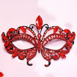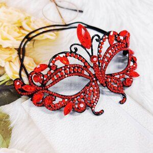 Red Crystal Masquerade Mask, Black Mask, Party Mask, Wedding Mask, Venetian Mask