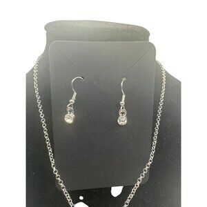 Red Crystal Pendant Necklace and Earrings Set Silver Tone Chain