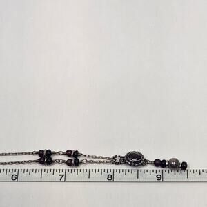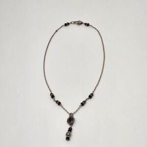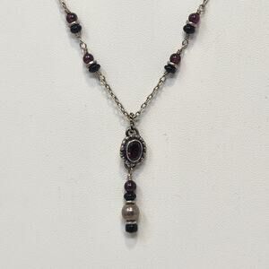 Red Crystal Silver Tone Metal Bead Y Drop Chain Necklace Artisan Handmade