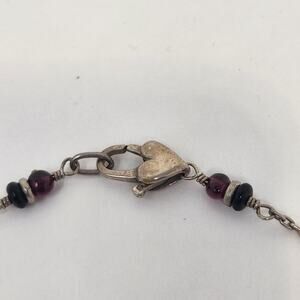 Red crystal and silver tone metal bead Y Drop silver tone chain necklace, heart lobster clasp closure. Artisan Handcrafted Jewelry Romantic Whimsygoth Boho Festival Dainty