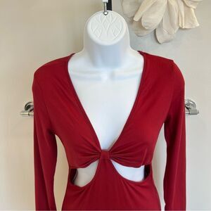 Turn heads with this stunning red cut-out dress. Perfect for any occasion, this dress combines elegance with a bold style.